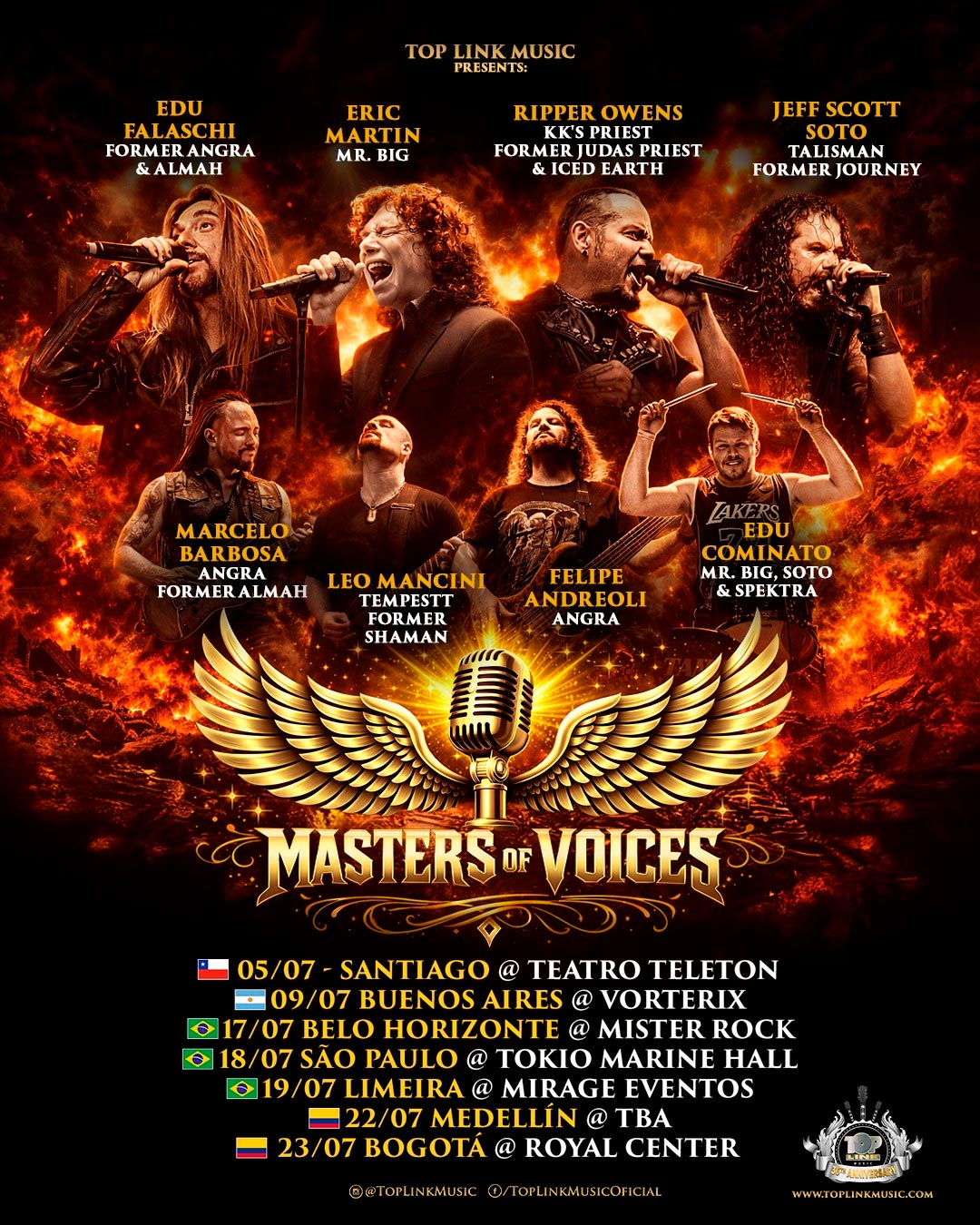 Edu Falaschi convida os fãs para os shows: “Estou aqui para avisar que vou fazer parte de um projeto, uma turnê sensacional chamada Masters Of Voices. Eu, o Eric Martin, o Jeff Scott Soto e o ‘Ripper’ juntos, cantando os clássicos da nossa história e da nossa carreira. Acompanhados por Marcelo Barbosa, Edu Cominato, Felipe Andreoli e Leo Mancini, um timaço, vamos rodar por vários países da América do Sul. E, claro, isso também vai acontecer no Brasil. Então, vejo vocês na estrada!”