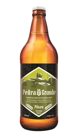 Pedra Grande Pilsen – É uma cerveja leve e muito refrescante, que possui aroma marcante do puro malte aliado ao aroma floral dos lúpulos utilizados em sua composição. Além disso, não é filtrada, o que garante as melhores características dos aromas e dos sabores dos maltes e lúpulos. Excelente pedida principalmente para quem está começando a apreciar cervejas artesanais de qualidade. Tem graduação alcoólica de 4,8% e 20 IBUs. Sugestão é que essa cerveja seja servida em uma temperatura entre 3 e 7º C. Disponível em garrafas de 600 ml.